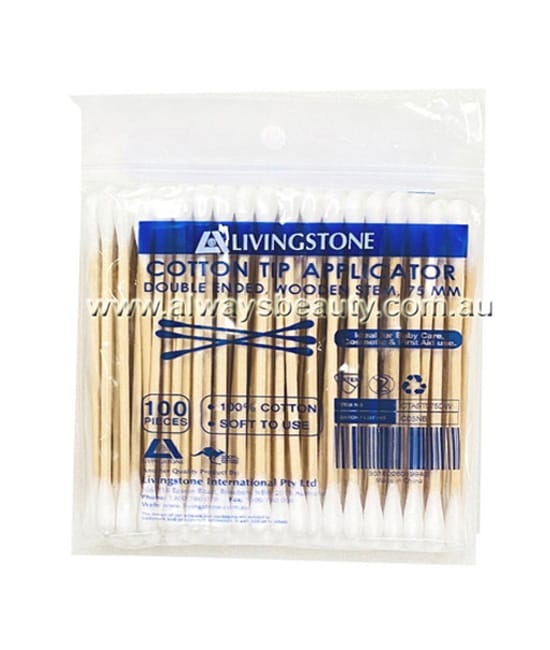 Livingstone Cotton Tip Applicator, Double Tipped, Biodegradable Wooden Stem, 7.5cm, 100 per Pack