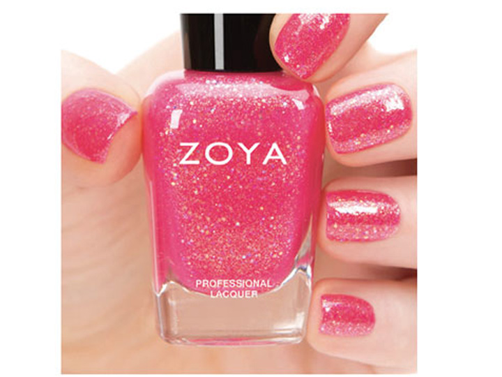 Harper by Zoya can be best described as a cotton candy pink with a spun gold shimmer. Featuring the exclusive liquid-metal holographic jelly formula, this shade is opaque in 2 coats.